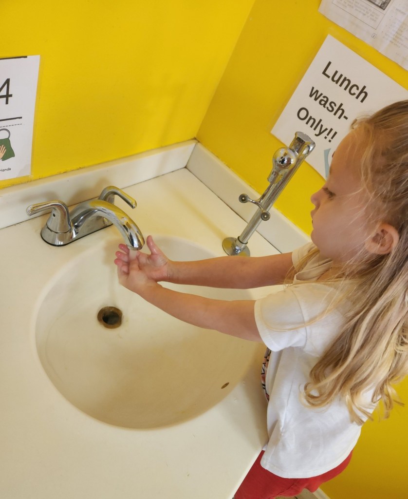 Our teachers teach their learners proper handwashing techniques several times a day. They wash their hands when arriving the daycare center, before and after meals and toileting, and when moving between activities, ensuring no germs transfer between hands, faces, and surfaces.